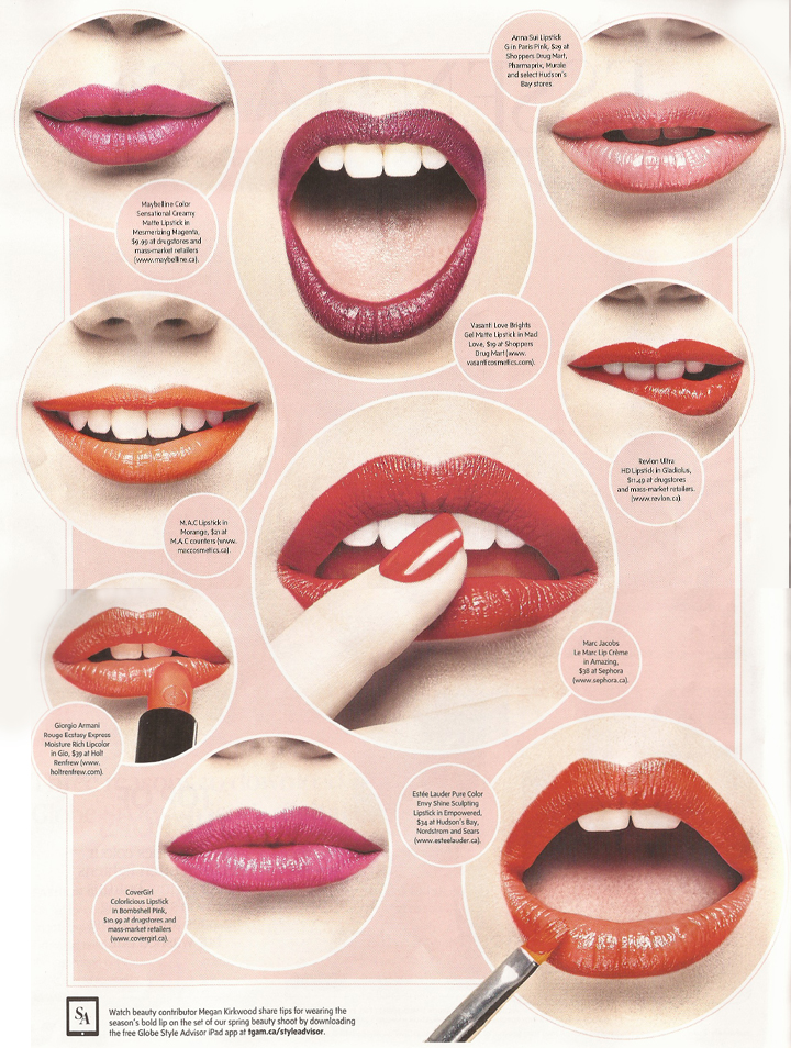 Tagged beauty, Biotherm, bright lips, contributor, expert tips, Globe Style Advisor, Leighton Meester, lips, makeup, Megan Kirkwood, spring 2015, The Globe and Mail, trends