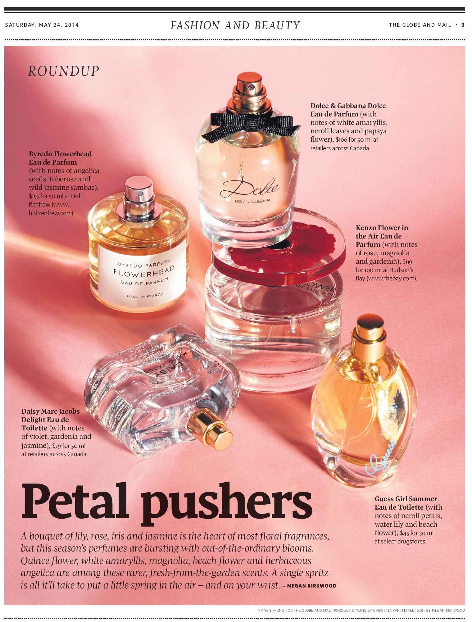 Tagged Beauty Roundup, floral fragrance, fragrance, Spring, Style Section, The Globe and Mail